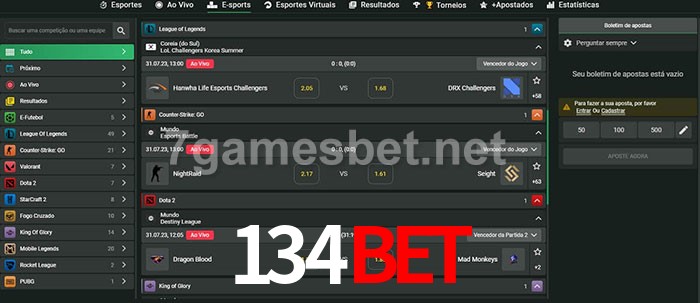 O 134Bet oferece uma grande seleção de opções de apostas em e-sports com probabilidades competitivas